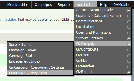 You can set the link type that you want here. Select whether the link will be to the membership or contribution contact page. Note: Once you select a link, it will appear on ALL surveys, until you set it back to - no links -